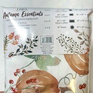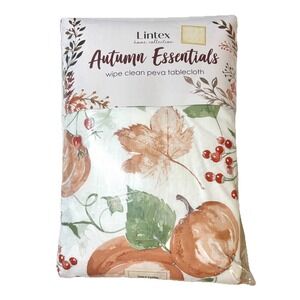 Autumn Harvest Tablecloth Vinyl Oblong 60" x 102" Peva Pumpkin Fall Thanksgiving