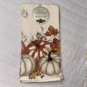 Autumn Hill Set of 3 Cotton Ivory Rust Gold Pumpkins Fall Harvest Kitchen Towels