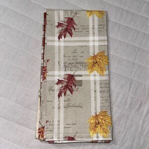 One ivory tan plaid with script and fall leaves