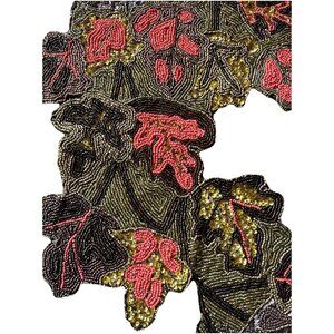 Enhance your autumn table setting with this exquisite beaded table runner. Featuring a forest of rust red and green leaves, it's perfect for cozy gatherings.