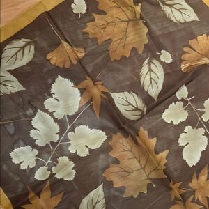 Elegant scarf featuring a brown and tan leaf print. Perfect for adding a touch of nature to your outfit.