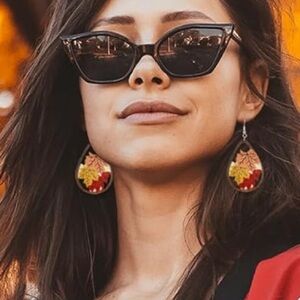 Embrace the beauty of fall with these stunning teardrop earrings featuring vibrant red, orange, and yellow leaf designs. Perfect for adding a touch of nature-inspired elegance to any outfit.