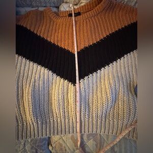 Autumn Leaves Tan Multi Chevron Stripe Knit crop sweater size S