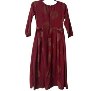 Autumn Midi Dress XS Burgundy Gold Tree Print Fall Modest Boho Cottagecore Artsy