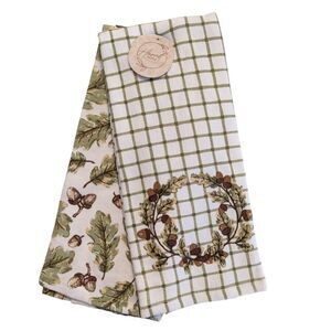 Autumn Oak Green Leaves and Acorns Wreath Kitchen Towels Set of 2 15 x 25-inch