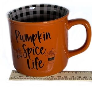 Autumn Pumpkin Spice Mug in a Harvest Fall Orange and Gingham Plaid Check Inside with Novelty Quote Pumpkin Spice for Life 12 OZ