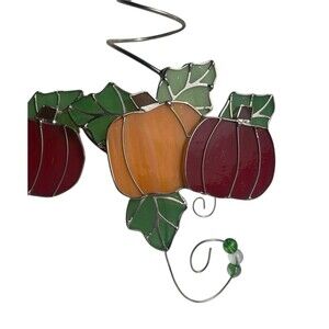 Autumn Pumpkins Stained Glass Sun Catcher Fall Ornament Set of 2 suncatchers made of multicolor stained glass in a classic style. Preowned in nice condition.