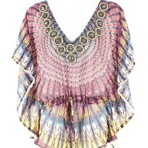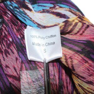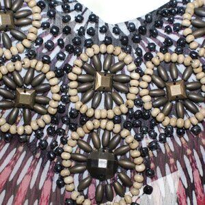 Autumn Saint James Sz S Red Purple Yellow Multi Beaded Poly Sheer Chiffon Top