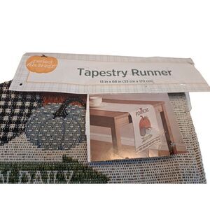 Add a touch of autumn to your dining table with this charming lot of three table runners and one hand towel. The rectangular runners measure 13 x 68 inches and are printed with a delightful pumpkin pattern, perfect for fall occasions. The lightweight cotton-polyester material makes them easy to clean and care for. The set includes a custom bundle of two additional autumn-themed table runners, bringing the total to 3 runners.