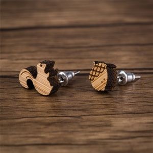 🌸NEW vintage "Autumn Vibes" wooden squirrel & acorn earrings! These beautiful, vintage stud earrings with sterling silver are perfect for you or as a gift for any animal or squirrel lover! These wood earrings are made from salvaged Oregon black walnut and carefully hand-carved to perfection, so each pair is unique and made with love.