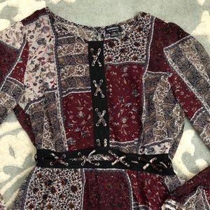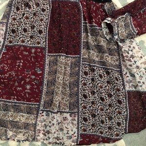 Autumn Wine Patchwork Flowy Dress