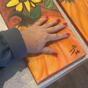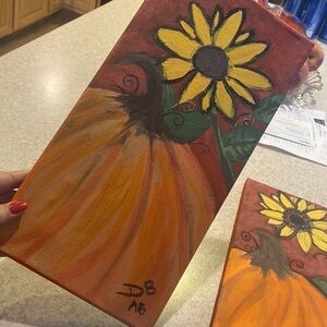 These paintings were done by my niece, and I save a spot every five minutes and we took turn painting each other. Very cute for the fall.