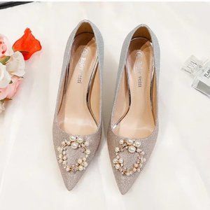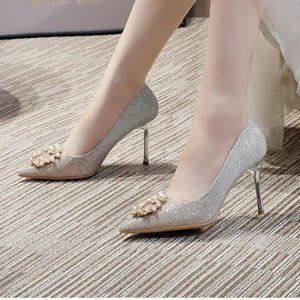 Autumn new pointed single shoes fine heel pearl buckle gradient high heel shoes
