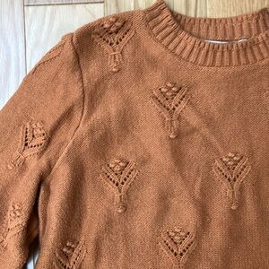 Adorable Loft sweater. fall vibes! Rusty orange color, very comfy and soft! Sweet knotted detailed pattern. Size large!