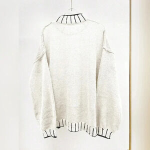 Autumn/Winter Casual Round Neck Colorblock Striped Stand Collar L
