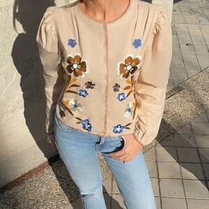 Autumn/Winter New Embroidered Design Casual Long Sleeve Blouse