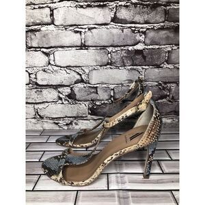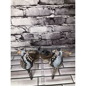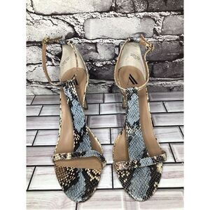 Ava & Aiden Blue Leather Snake Skin Open Toe Strap Stiletto Heels Women Sz 9.5M
