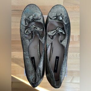 Ava & Aiden Double Bow Strap Sparkle Glitter Metallic Bronze Gold Ballet Flat 8M