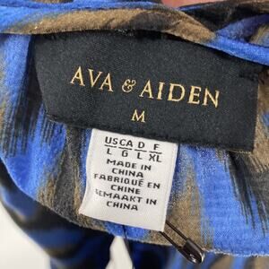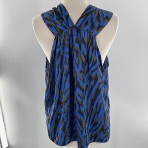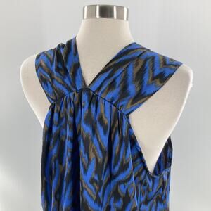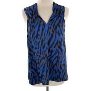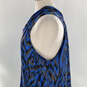 Ava & Aiden Women's Blue Brown Silky Sleeveless Blouse Top Size Large New