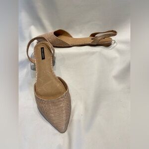 Ava & Aiden pale pink snakeskin leather slingback flats, size 11