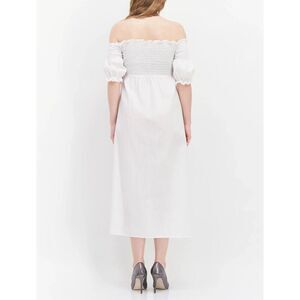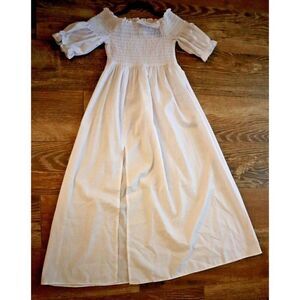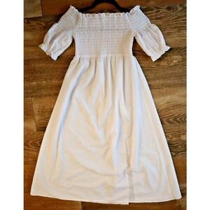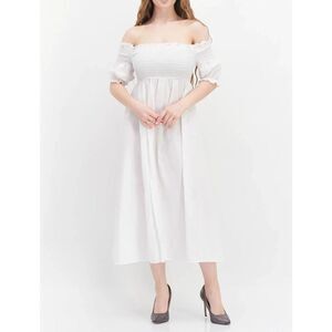 Ava + Esme Women's Sz 8 White Off The Shoulder Puff Sleeve Shirred Maxi Dress