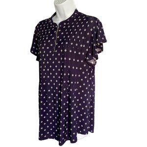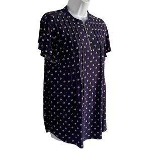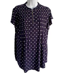 Ava & Grace Short Sleeve Blue White Top with Quarter Zipper Women's Medium