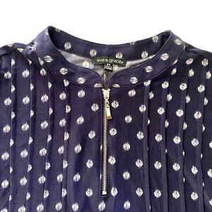 Ava & Grace blue and white short sleeve top in medium. 96% polyester 4 % spandex, it features a quarter zipper for a comfortable and stylish look.