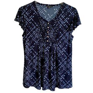 Ava & Grace Short Sleeve Quarter Button Black Blue Short Sleeve Top Medium NEW