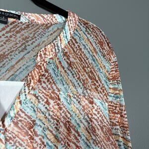 Ava & Grace Women's Brown & Blue Abstract Boho Top - Size Large - Semi-Sheer
