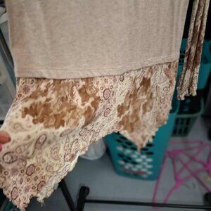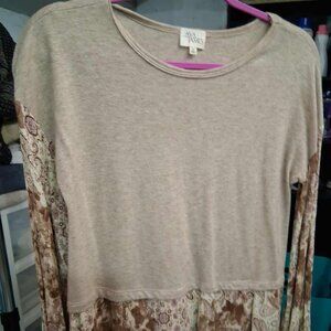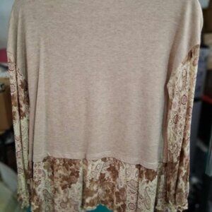 Ava James 2Fer Beige Sweater Vest / Long Sleeve Print Blouse, SIZE SMALL