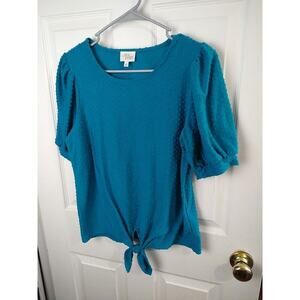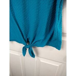 Ava James Aqua Swiss Dot Front Tie Short Sleeve Top. Size M