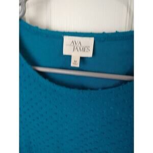 Ava James short sleeve aqua swiss dot pullover blouse in good condition. Short sleeve pintuck shoulders front tie top.