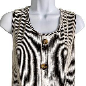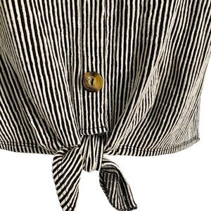 Ava James Black White Striped Sleeveless Top Front Tie Faux Buttons Medium NEW