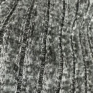 ~ Heathered dark gray with vertical ribbing, lose cowl neck with drawstring.
