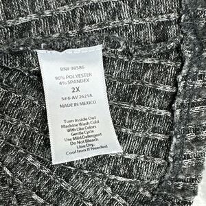 Ava James Cowl Neck Tunic Top Womens 2X Gray Ribbed Knit Drop Shoulder (0756)