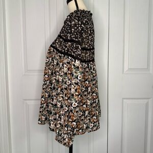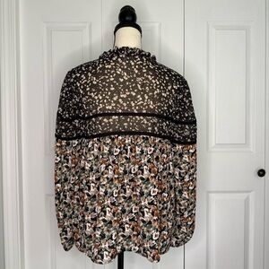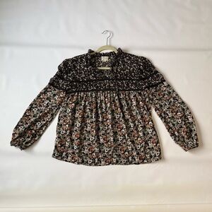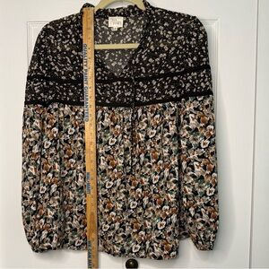 Ava James Floral Boho long sleeve flowy fall colors Boxy Blouse size Medium
