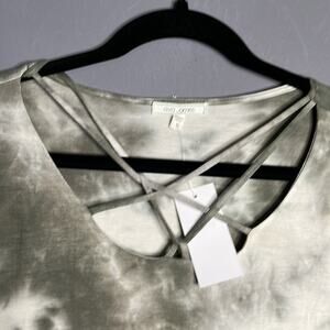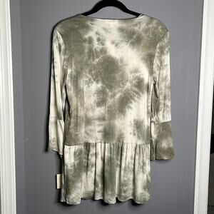 Ava James Green Tie Dye Peplum Knit Top With Criss Cross Neckline Size Small