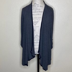 Ava James Gray With Black Trim Handkerchief Hem Open Front Cardigan Size Small