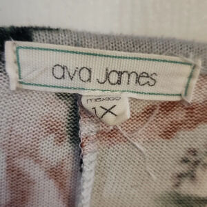 This Ava James asymmetrical top combines comfort and style, making it a perfect addition to your wardrobe. Designed in a flattering size 1X, it features a vibrant floral print in warm tones of burgundy, orange, yellow, and green on a soft light blue background. The flowy, asymmetrical hemline adds a trendy and feminine touch to this versatile piece.
