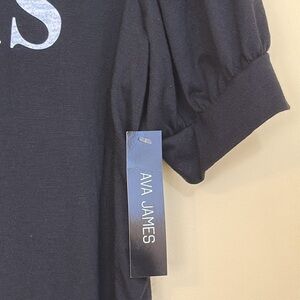 Ava James | NWT Black Paris Pink Bow Eiffel Tower Rounded Hem Poof Short Sleeve Top Shirt in size medium