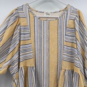 Style: Ava James Top Women 2X Yellow Blue Striped Linen Cotton Blend Short Puff Sleeves