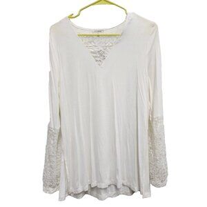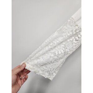 Ava James Womens BOHO Fairy Romantic Blouse Medium White Lace Flare Sleeve