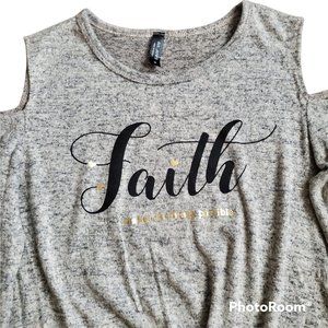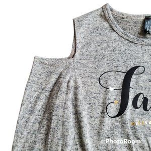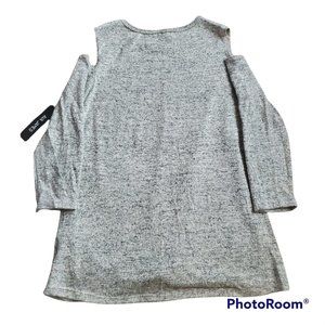 Ava James Women's Cold Shoulder 3/4 Sleeve Knot Front Knit Blouse Gray Medium NWT