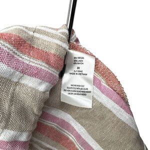 Ava James Womens Linen Blend Shirt Top Striped Button Short Sleeve Beige Sz 2X