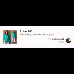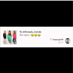 The mint Ava lace up top featuring 3/4 length sleeves. Made of rayon and spandex. Super soft, flowy and drapes nicely. Leggings sold separately. Great value for the quality. Small