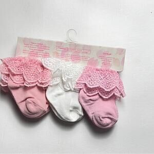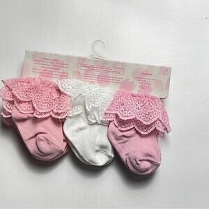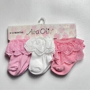 Ava Olivia Three Pairs Baby Ankle Socks With Lace Accessories Sz 0-12M