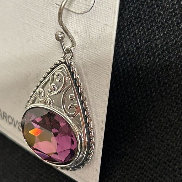 Ava Ro Earrings Purple Swarovski Crystals Sterling Silver Scroll Design Dangle