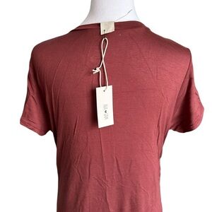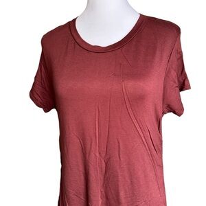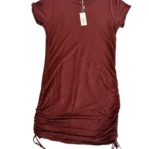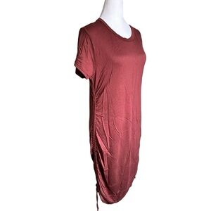 Ava Sam Rusty Orange Red Ruched Midi Dress Size L