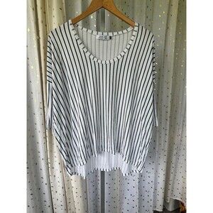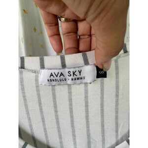 Ava Sky Fighting Eel Hawaiian Aloha Basic Stripe Contemporary Flowy Blouse Top S