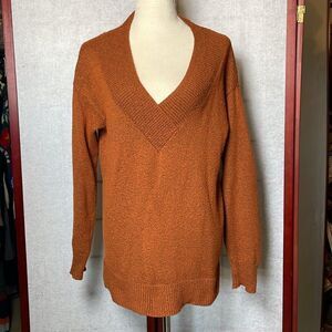 Ava & Vic Burnt Orange Cozy Knit Women's Pullover V-Neck Sweater (Size: 14)